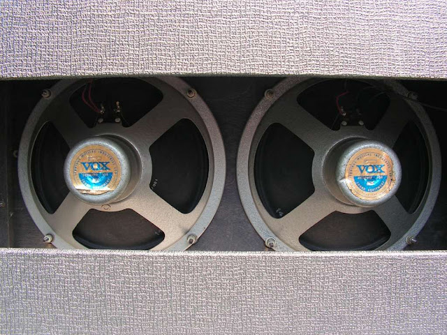 I'm not convinced that grillcloth is original - doesn't look like the brown coloured stuff on the Vox amps I've owned myself.  However, it IS a grey panel amp so thats '67 onwards and it 'may' be original.  I will say that the grillcloth on Vox amps tends to sag and that cloth looks TOO perfect.  Has it been recovered too?